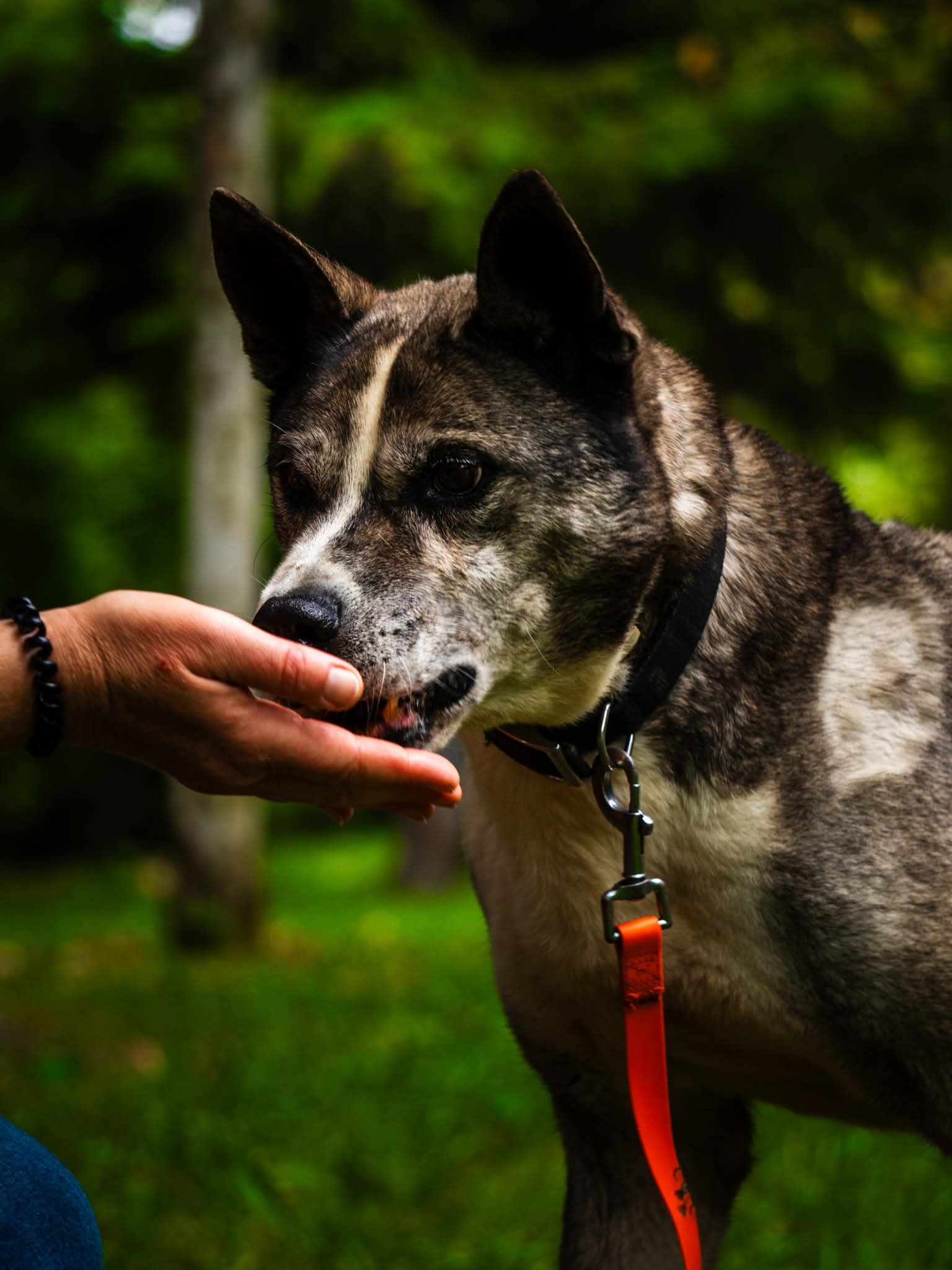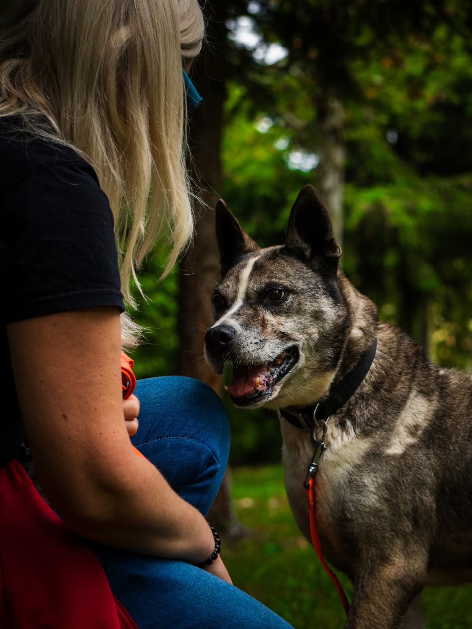 Dżok jest 10-12 letnim psem adoptowanym kilka lat temu ze schroniska w lubuskiem. Nie wiemy, jak znalazł się w okolicach miejscowości Uraz niedaleko Wrocławia, ale błąkał się tam bardzo wychudzony i w kagańcu, który uniemożliwiał mu jedzenie i picie. Został stamtąd zabrany przez dwie empatyczne osoby i przewieziony do wrocławskiego schroniska. Od razu wzbudził sympatię pracowników i wolontariuszy. Powoli przybiera na wadze, co czyni go coraz bardziej dostojnym. Z wystraszonego, zabiedzonego chudzielca z każdym dniem przeobraża się w pięknego, pewnego siebie psa. Jest łasy na pieszczoty, pięknie ustawia się do głaskania nie toleruje psów, nie znamy jest jego stosunku do kotów. Pomimo wieku jest dziarskim psiakiem, gotowym na średnio długie spacery, podczas których zdarza mu się pobrykać. Zachęcamy do adopcji tego starszego pana. Jesteśmy pewni, że nowemu opiekunowi dostarczy wiele powodów do uśmiechu. To taki słodki psiak! Z uwagi na wiek Dżok powinien trafić do domu z małą liczbą schodów lub mieszkania z windą. Jest średnim psem, waży ok 20-25 kg.