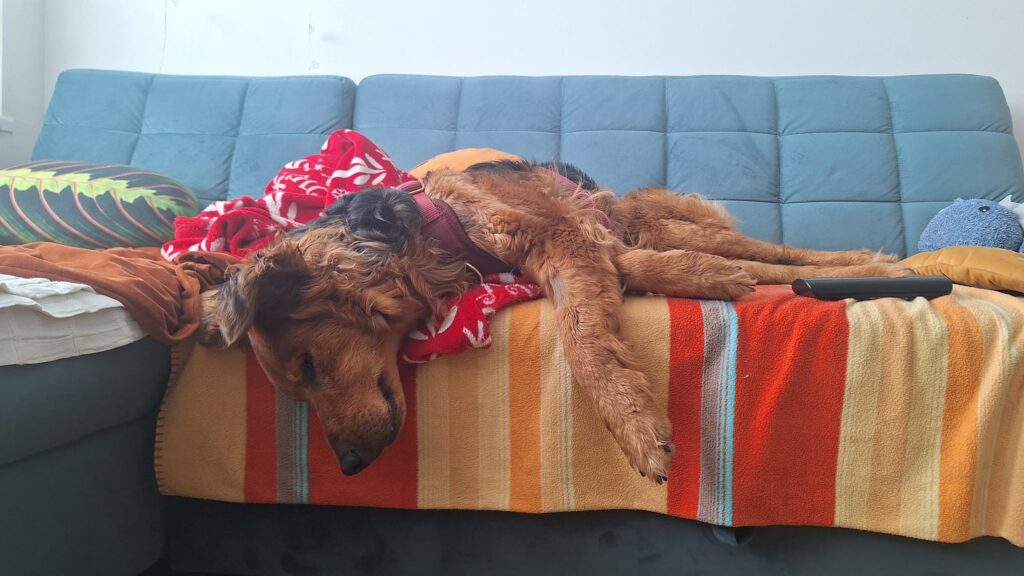Jaskier został uratowany z łańcucha. Trafił do schroniska, a później znalazł dom – niestety adopcja się nie powiodła. Życie blisko ludzi i w mieszkaniu okazało się dla niego ogromnym wyzwaniem.