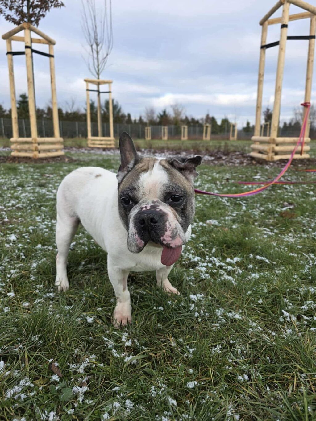 Lutek to 12-letni piesek w typie buldożka francuskiego. Został znaleziony samotnie, gdy bez opieki podążał wałem nad Odrą. Biorąc pod uwagę jego stan zdrowia, miał ogromne szczęście, że został w porę zauważony i zabezpieczony.
