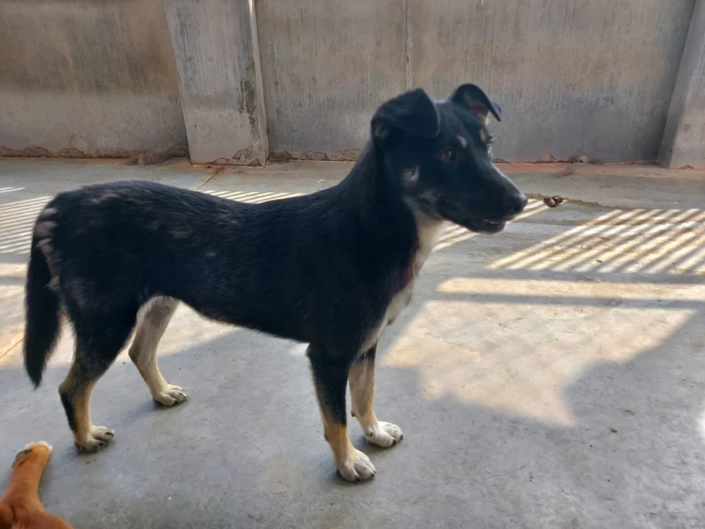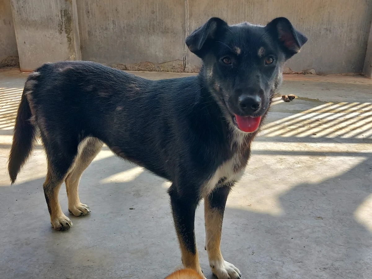 W schronisku dzieli boks z innym pieskiem i dobrze się z nim dogaduje.