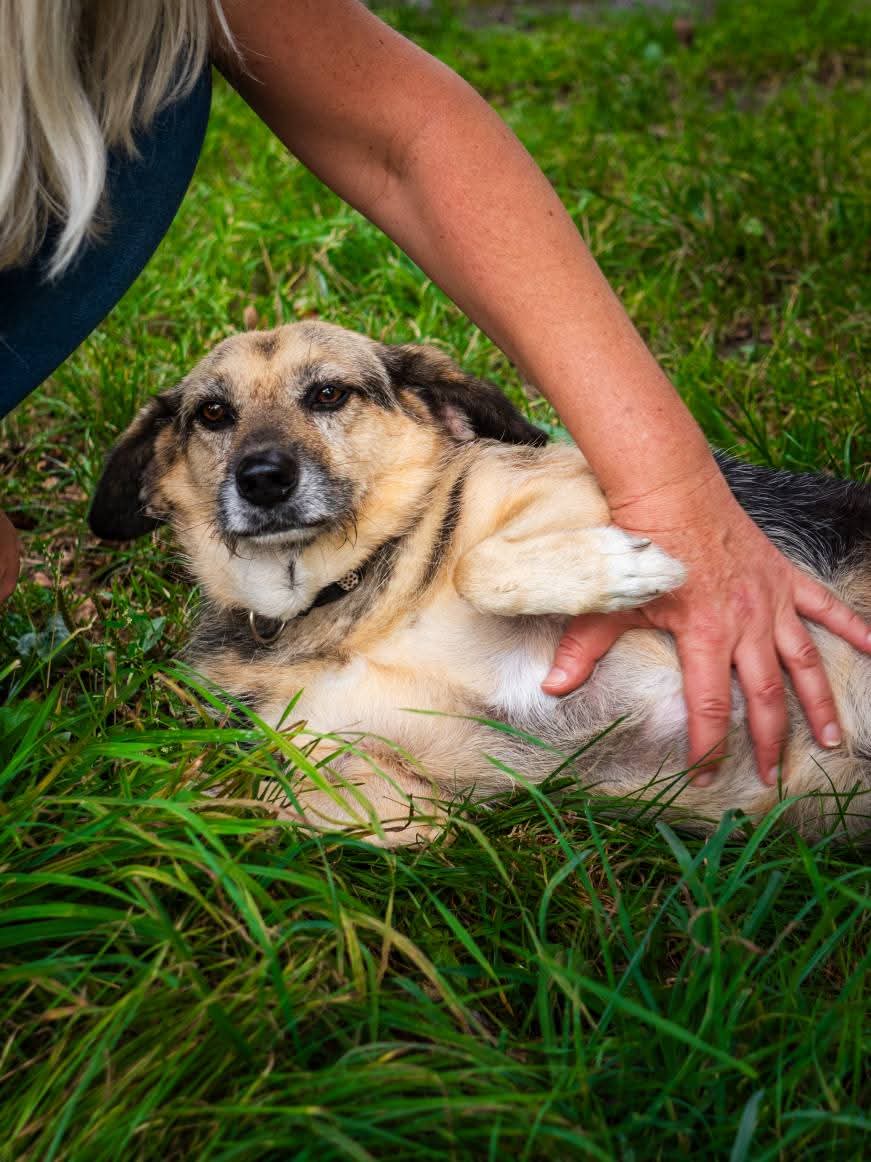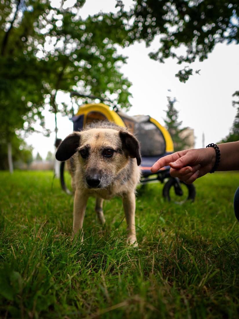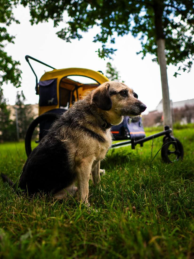 Obecnie Muminek jest już po kilku operacjach. Niestety jedna tylna łapka nie jest sprawna. Jednak na krótkich spacerach, na które wyjeżdżamy ze schroniska wózkiem Muminek radzi sobie dobrze. Drepcze, wącha, siedzi, leży, nadstawia brzucha do głaskania. Grzecznie pozwala się wsadzać i wysadzać z wózka. No chyba, że jeszcze nie chce wracać to wtedy kładzie się na plecach.